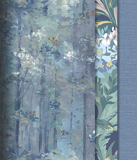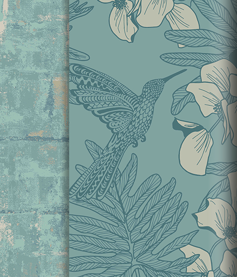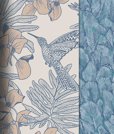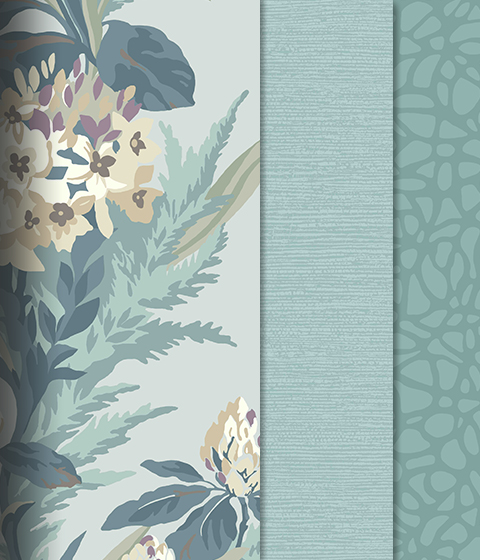 На создание коллекции художников вдохновили дикие острова Северной Атлантики. Представьте, что вы открыли уникальное место, где создаются незабываемые, фотографические воспоминания - прекрасное, величественное и нетронутые пейзажи. AURORA - путешествие открытий, где природа и комфорт встречаются с динамичным образом жизни. В коллекции представлены ботанические цветочные орнаменты, успокаивающие лесные пейзажи, текстурные эффекты патины и элегантные орнаменты с перьями, обогащённые натуральными красками, передающими тёплую, но живительную цветовую палитру. В каталоге AURORA представлены 7 уникальных дизайнов, выполненные в традиционных (surface print) и цифровых техниках печати, каждый из которых дополнен уникальными компаньонами.